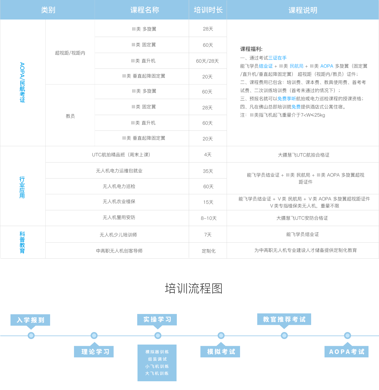 相關(guān)民航無人機(jī)法規(guī)、無人機(jī)概述、系統(tǒng)組成及介紹、飛行原理與飛行性能、氣象、空域與起降場、任務(wù)規(guī)劃、旋翼無人機(jī)原理構(gòu)造啟動布局、無人機(jī)駕駛員飛行手冊、空域申請與空管通訊、航線規(guī)劃、系統(tǒng)檢查程序、正常飛行程序指揮、應(yīng)急飛行程序指揮、任務(wù)執(zhí)行指揮等。